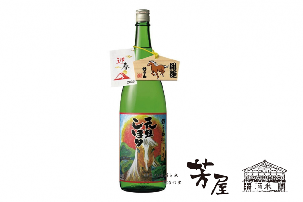 名水「宝水」で有名な朝日神社でお祓いをした絵馬が付いた新年に相応しいお酒です。